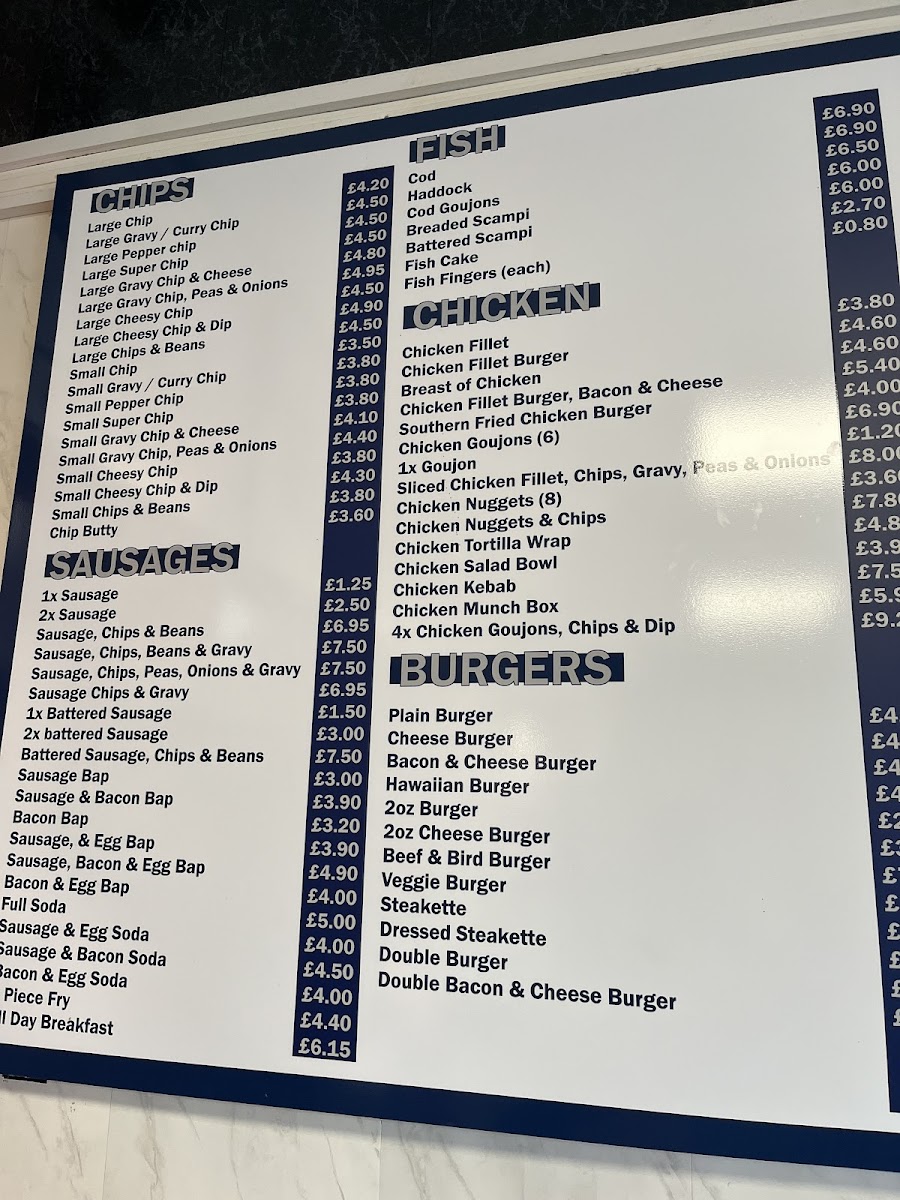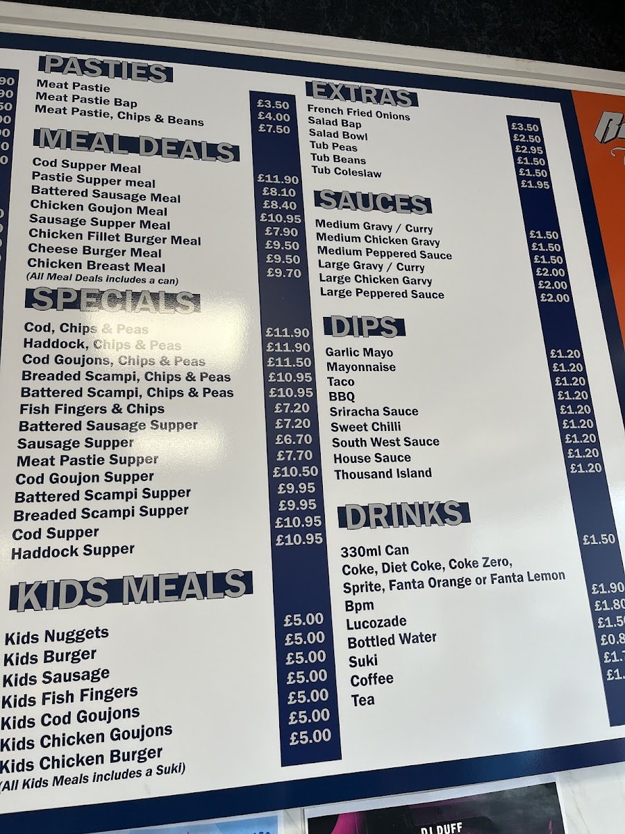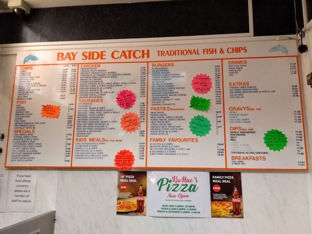 Welcome to Bayside Catch, a gem located at 97 Main St, Dundrum, boasting an enticing menu that's sure to delight seafood lovers. Known for its golden, crispy fish and chips, Bayside Catch has quickly become a local favorite. Customers rave about the Cod supper, highlighting its generous portions and unbeatable flavor—some even claim it’s the best within a 20-mile radius. The menu doesn't stop at fish; you'll discover an array of tempting options, including delicious chips that are celebrated for their seasoned perfection.